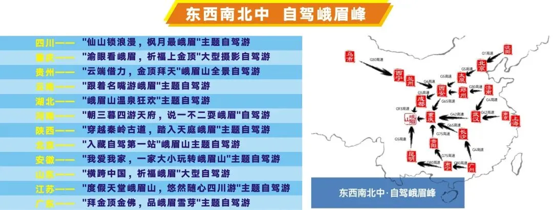 针对不同地区,推出不同主题的峨眉山自驾游产品,满足不同群体的不同需求。