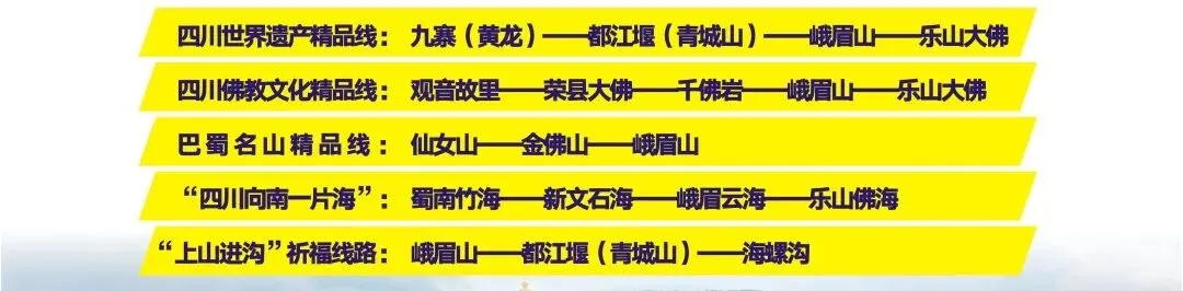 大峨眉旅游联盟、四川世界遗产旅游联盟和“四川向南一片海”旅游联盟等联动,推出精品旅游线路。