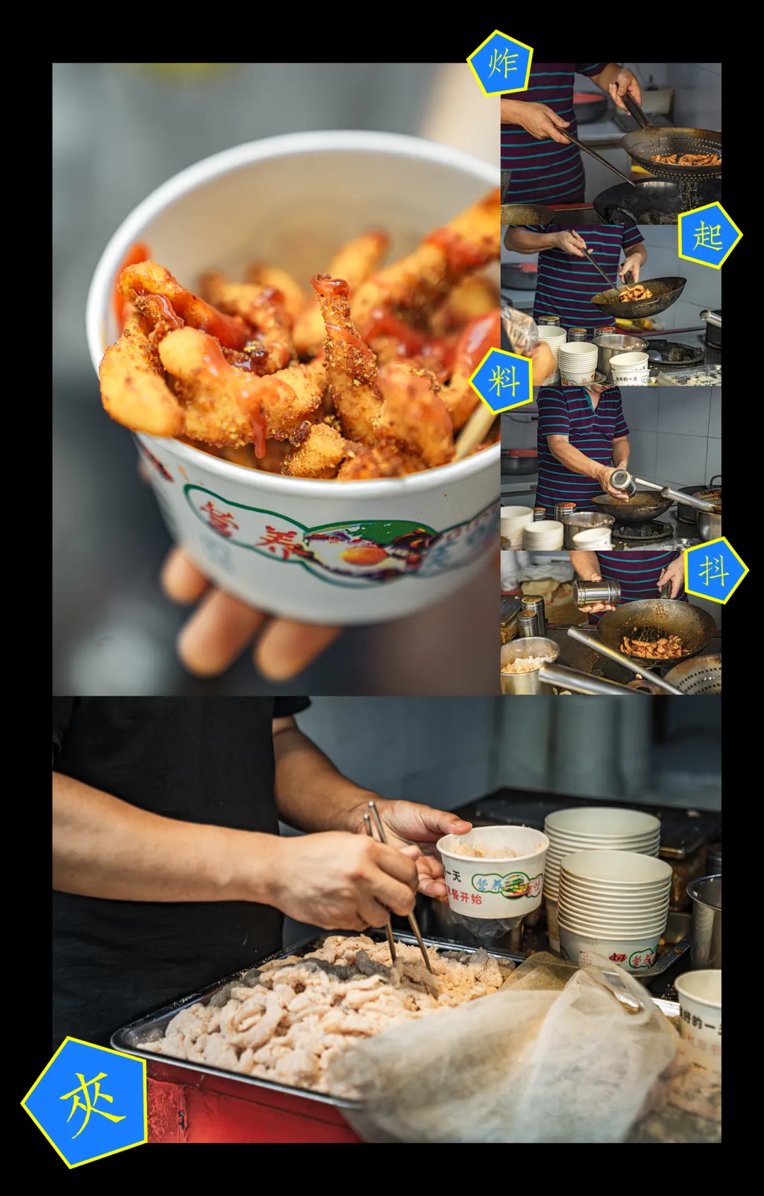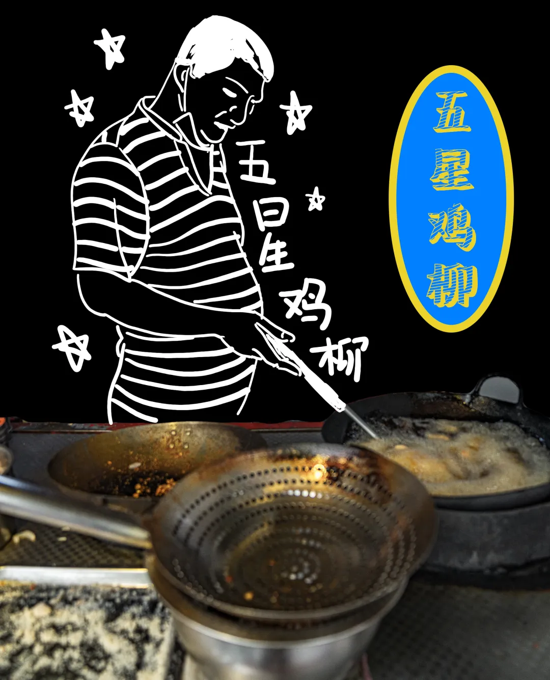 一个煤气灶、一口油锅、一只大勺。五星鸡柳的厨房组成简单,出品朴实得像回到了2005年。 在什么都需要噱头吸引人气的时代,这份简简单单连洋葱碎都没有的鸡柳,高温过油炸后,用孜然、辣椒粉和番茄酱完美复刻了童年的味道。