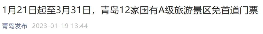 根据青岛市文化和旅游局、青岛市财政局《印发青岛市关于大力提振文化和旅游消费的政策措施的通知》(青文旅发〔2023〕2号)文件要求,现就景区免门票开放有关事项公告如下。