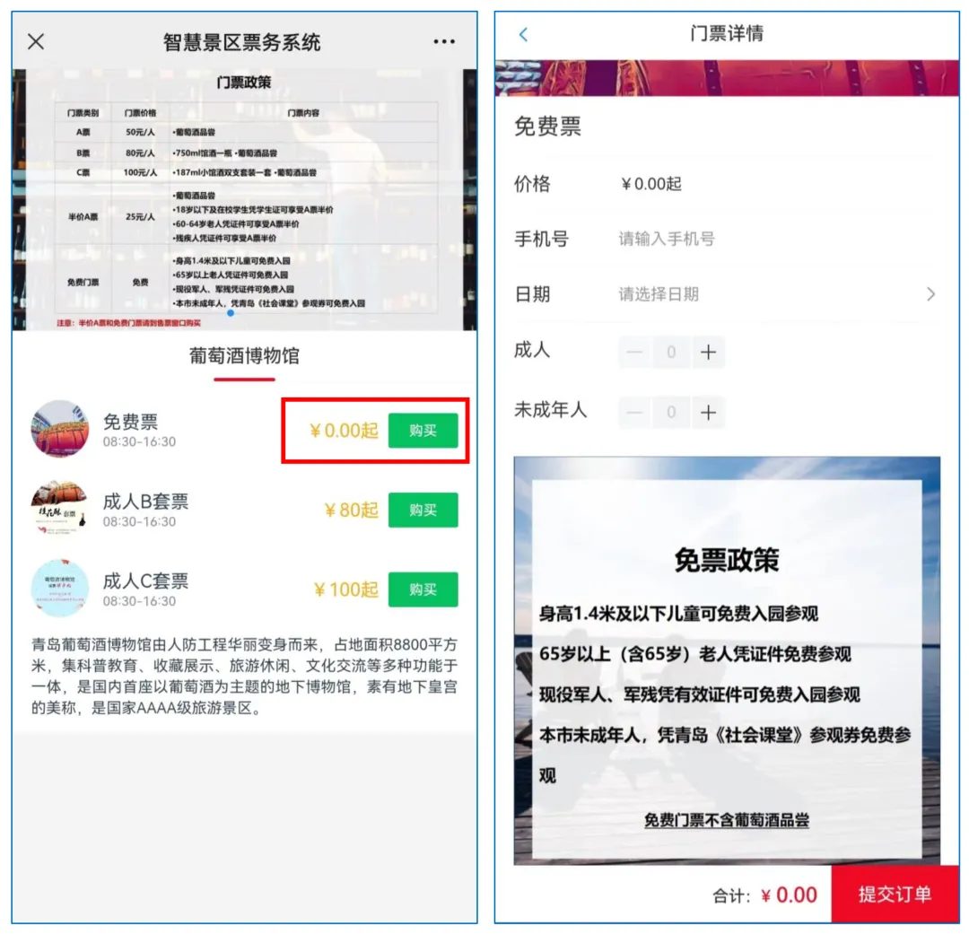 2、点击购买“免费票”,进入右图