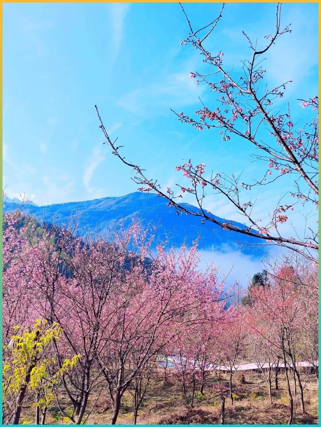 是真正的山野樱花。长在半山腰、散落在茶园边、探出头来挡住你视线的那种……有种粗粝的浪漫。我也不知道怎么形容,大概就是"没有围栏的美"吧。