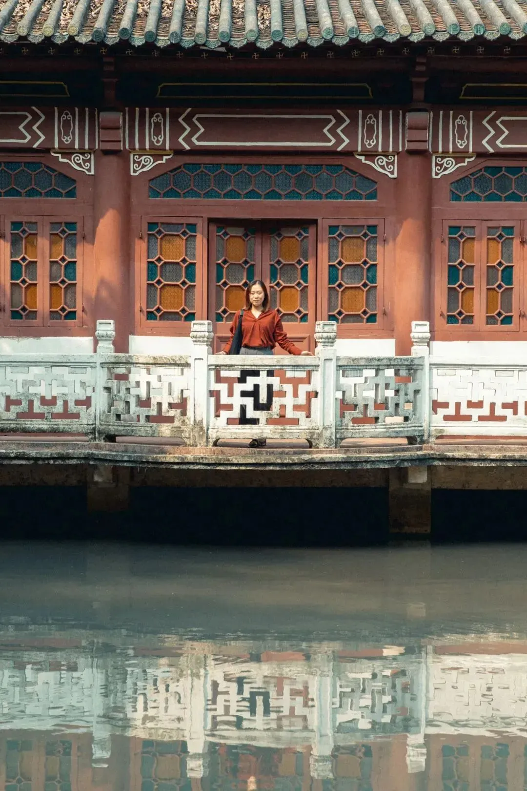 处处可见的撞色满洲窗,岭南特色的民国初期建筑群,主殿的红柱青瓦.......园处的各个地方都透露出复古的韵味~