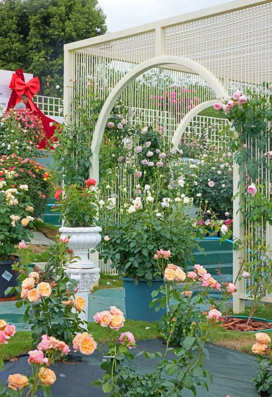 据了解,月季康养园主要分为色块展示区和品种展示区,其中色块展示区对黄色系、红色系、粉色系、蓝色系以及双色的20多个月季品种进行了分区种植展示;品种展示区展示了由月季课题组筛选出的70多个开花效果好的月季品种。