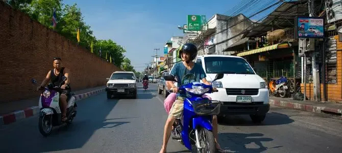 自助游清迈最佳的出行方式就是借摩托车,大多为100cc的排量,24小时200铢,自己去加油。这里的摩托马力都超大,技术不是很好,最好不要轻易尝试。建议去塔佩门附近或者周六夜市附近租,因为城外相对便宜。清迈市郊的路很好走,且路牌指示十分明确。
