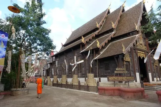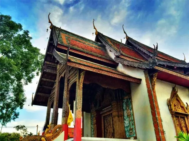 按摩之后身心都得到了最大的满足,再去清迈三大寺庙之一的帕辛寺。寺庙华丽而庄严,而且香火非常的旺盛。是清迈历史最悠久的佛寺之一,建筑风格独特,上方的木造藏经阁内有精致的木雕,并且装饰也很精致。如果赶上晚课僧人在佛堂吟诵经文,更能感受到佛国的虔诚气息。聪Chedi酒店坐嘟嘟车30B左右,古城内步行皆可至。
