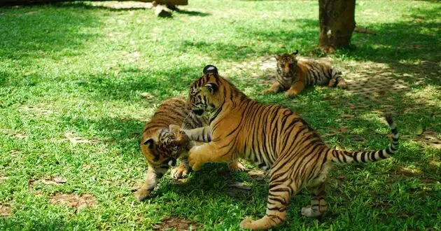 上午半天的项目后,下午包车前往老虎王国,园内有大、中、小老虎三种,都可以亲密接触15分钟左右,越小的老虎越贵也越活泼,消毒入园后会有工作人员指导拍照,安全无忧。