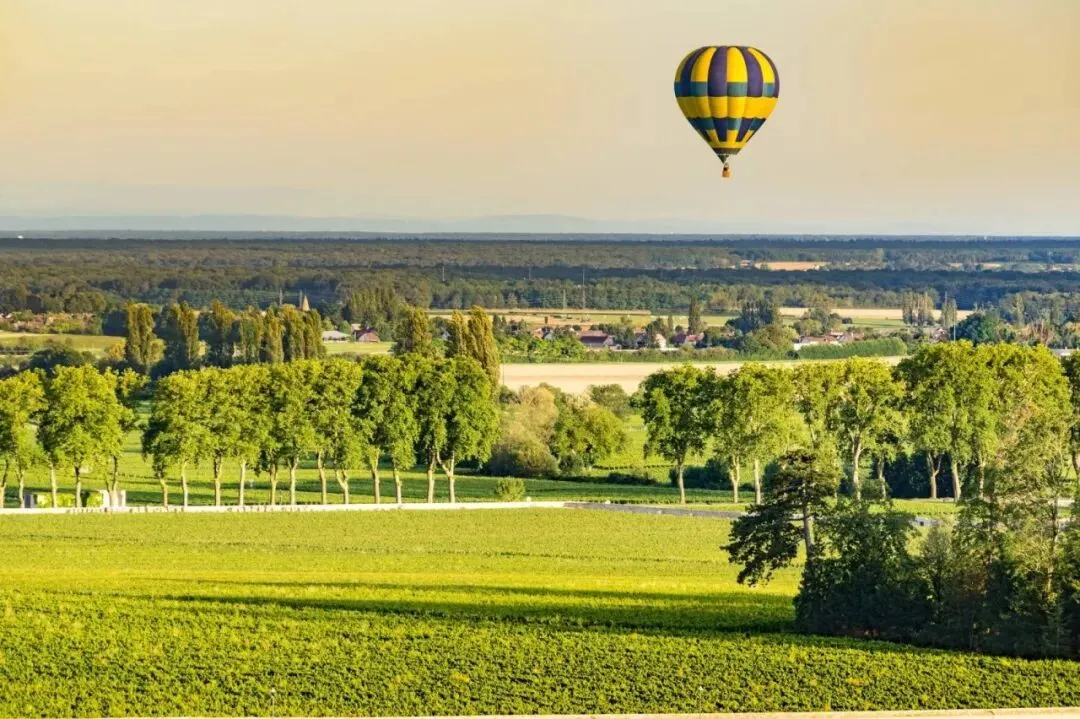 午后的悠闲时光结束后,前往伯恩以南几分钟车程的波马尔(Pommard)村,登上热气球。在落日余晖中冉冉升起,以“上帝视角”俯瞰伯恩连绵起伏的森林丘陵、错落有致的彩色屋顶以及世界闻名的葡萄园地带,将勃艮第的极致浪漫尽收眼底。