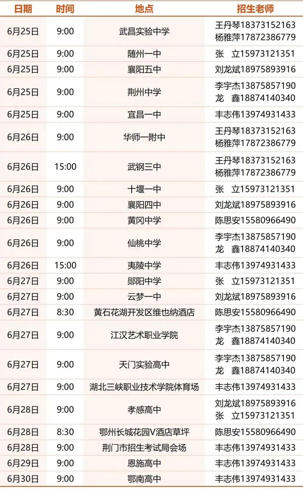 行程安排 | 国防科技大学本科招生现场咨询会(河北、贵州、湖南、湖北、天津)