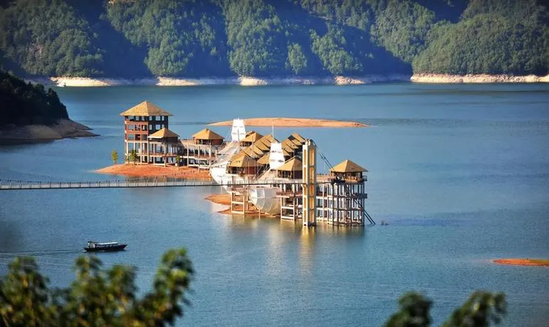 仙宫湖这个地方的名字听着玄乎,但你真去了就会发现,它让你重新理解的是什么叫水和山的关系。很多湖是被山围着的,山是山,湖是湖,界限分明,但仙宫湖不是,它的湖水会淹进山体里,形成很多半岛和小岛,你坐船在湖里走,看到的不是山在远处立着,是山就在水里泡着,有些树的根部已经被水淹了,但树还活着,还在长,这种山水互相渗透的状态让人觉得这个地方不是静止的,是活的,是在不断变化的。