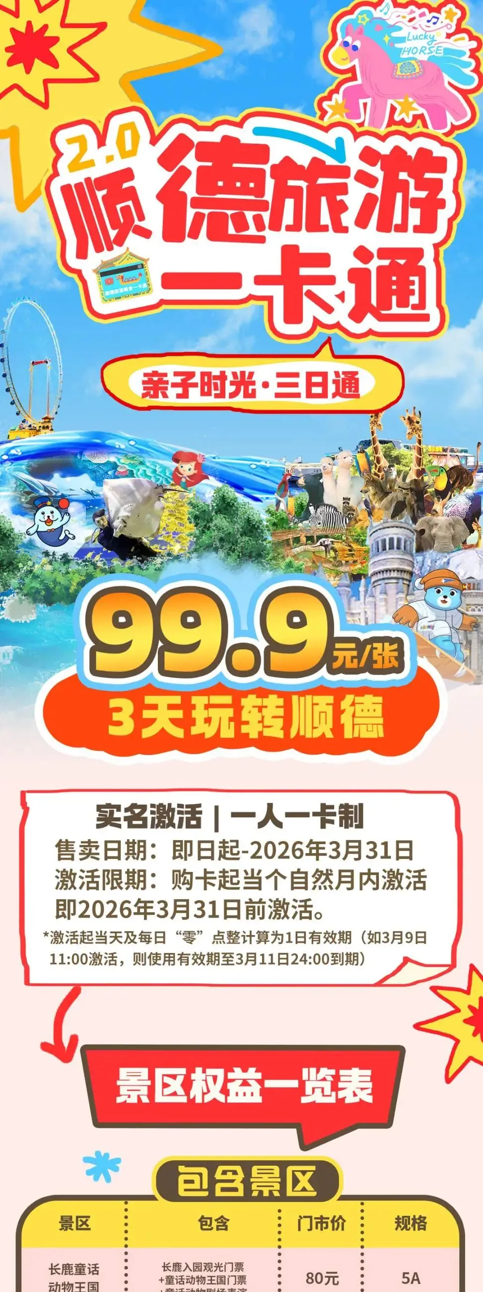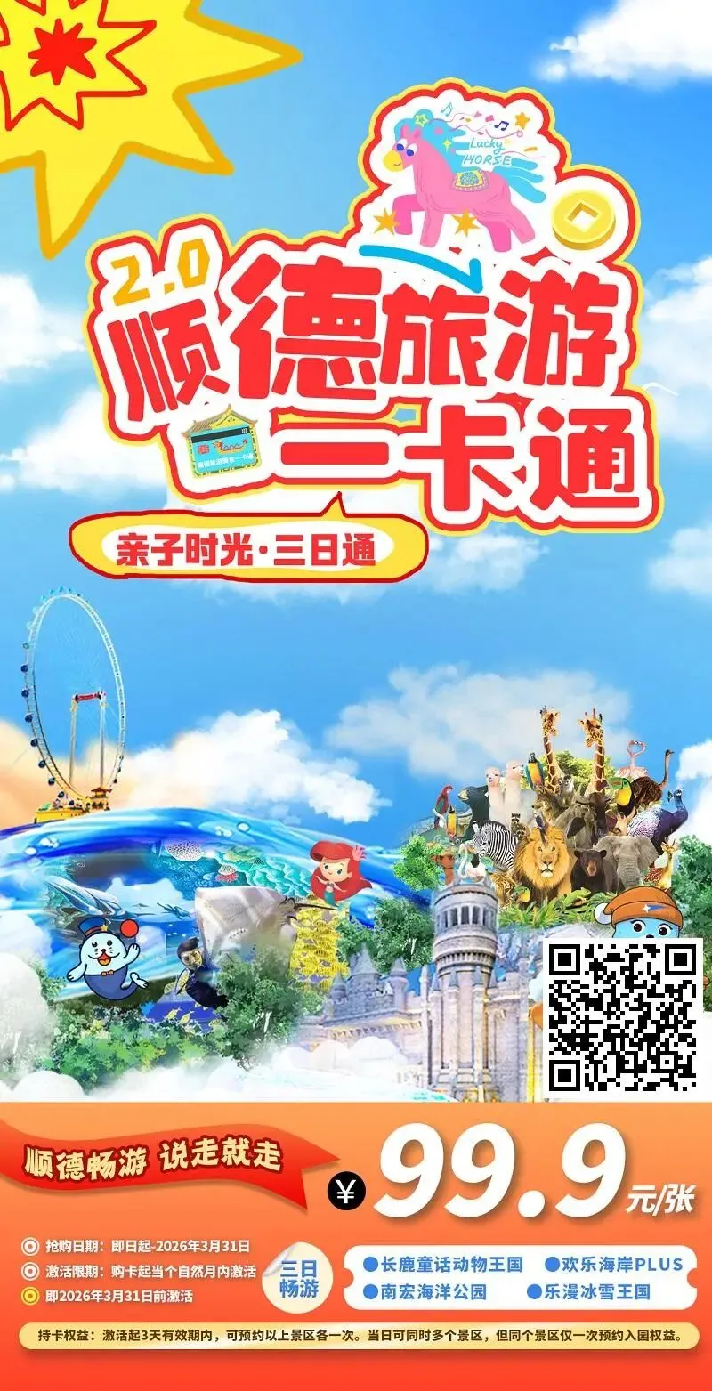 重磅来袭“顺德旅游一卡通2.0”正式上线!99.9元!3天 · 畅玩顺德四大景区!多多支持!