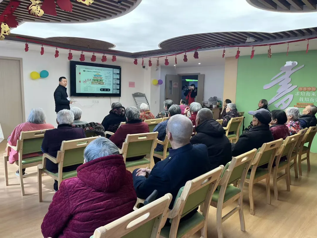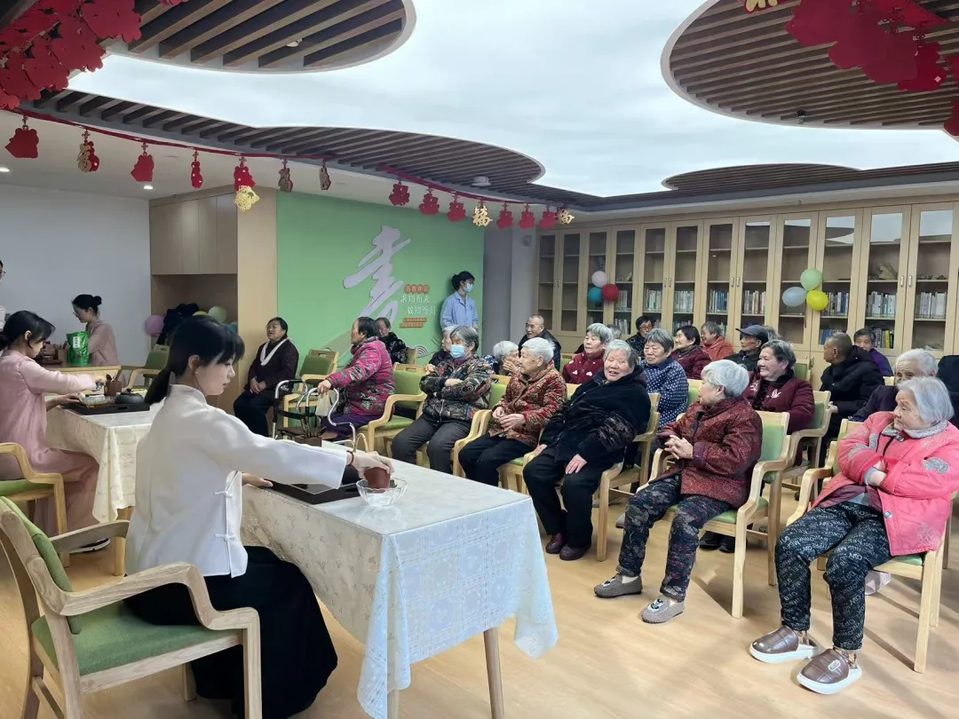 学院师生为老人们带来了一场雅致的茶文化表演。琴声悠扬间,绿茶清鲜、红茶温润,长嘴壶茶艺行云流水,赢得老人们阵阵掌声。学生们耐心陪伴、手把手教学,邀请老人亲手体验冲泡技巧;学院茶艺老师细致讲解科学饮茶知识,叮嘱老人们健康养生要点。一杯杯热茶捧在手心,一声声问候传递温情,师生们以茶为媒、以茶暖心,将关怀与陪伴送到老人心坎上。