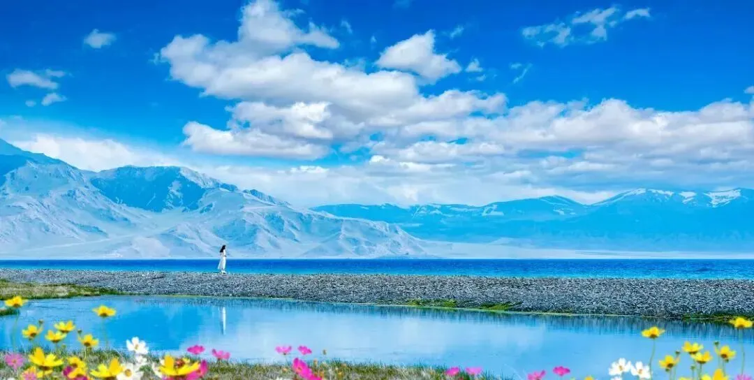 赛里木湖高山明珠,湖水湛蓝如宝石,环湖草原与雪山相映,诗意无限。
