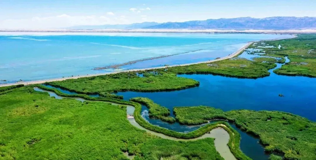 沙漠中的翡翠,湖水清澈,沙丘环绕,演绎自然奇观。