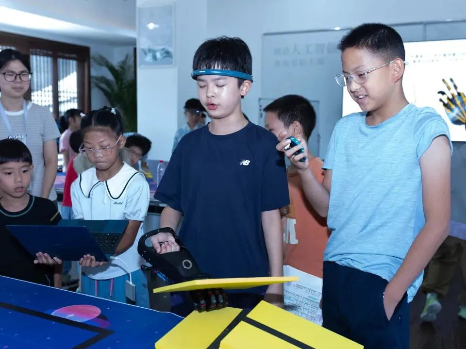 朋友圈有一位家长分享了孩子的课后感想:“戴上头环,用大脑的力量控制机械臂完成任务,就好像拥有了超能力,比任何游戏都刺激!我也知道了专注力原来真的可以被训练。”