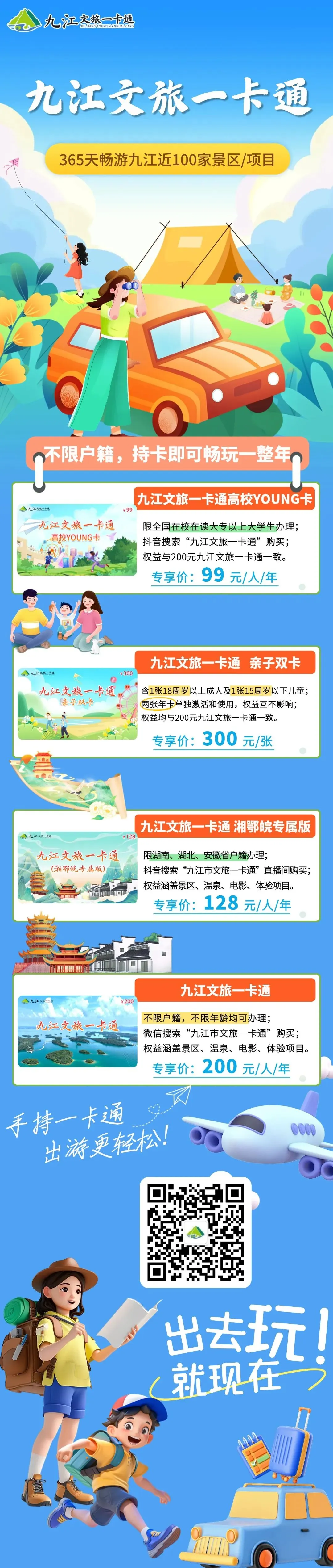 请大家相互告知!为了保障大家的入园体验及出行安全,请在出行前拨打九江文旅一卡通客服热线400-8836-696转1或拨打景区电话咨询是否营业,且随时关注“九江文旅一卡通”官方公众号以及用户会员群内消息,并相互转告。