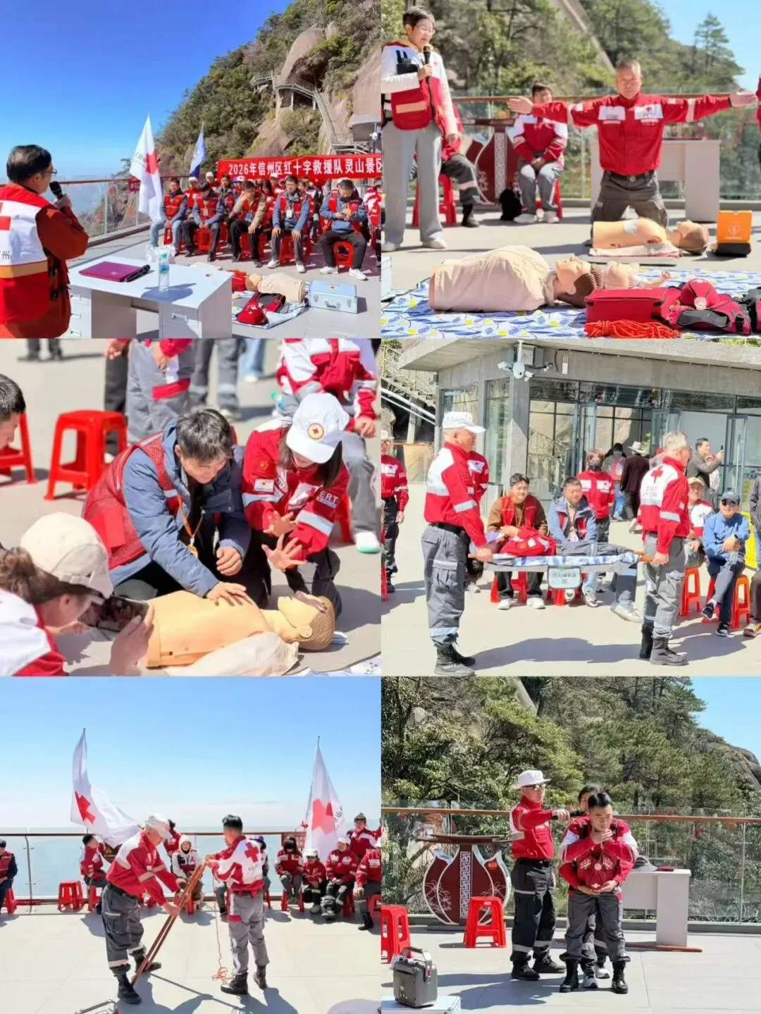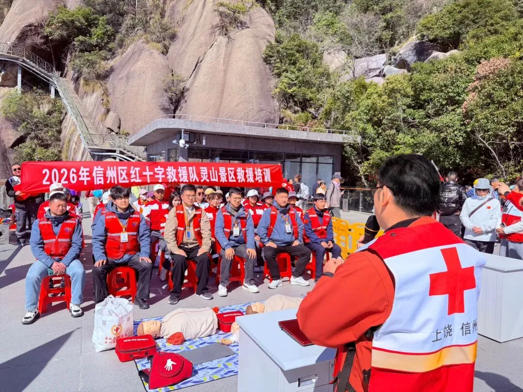 为深入贯彻“人民至上、生命至上”理念,落实《健康中国2030规划纲要》中“加强全民急救能力建设”的要求,进一步提升信州区红十字救援队志愿者应对景区突发意外的应急处置能力,夯实灵山景区安全保障防线,3月13日,上饶市信州区红十字救援队志愿者在灵山景区组织开展2026年信州区红十字救援队灵山景区救援培训,区红十字救援队全体志愿者参加培训。