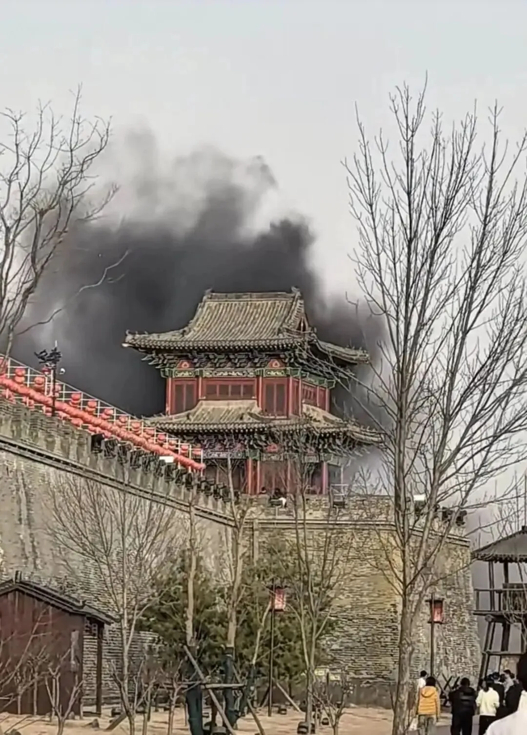 2月21日,拥有2600多年历史的邯郸广府古城5A级景区角楼突发火灾,经核查,起火原因是游客随意丢弃的烟头引燃了周边堆放灯笼的纸箱,万幸火情及时处置,未造成人员伤亡。