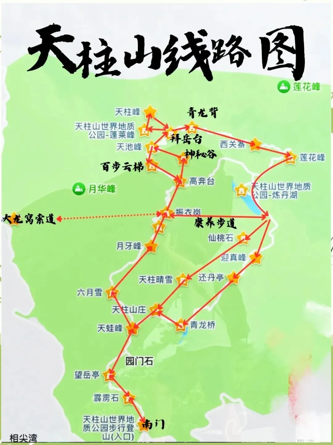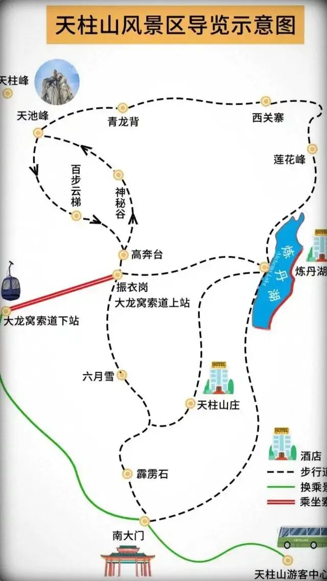 🏞️ 游览路线推荐:天柱山分以下几条路线,可根据时间和体力选择。