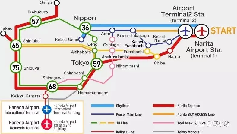 我们华人都看得懂汉字,而日本使用汉字的地方很多,下面为大家献上机场到东京的线路图,英文版与日文版↓↓↓