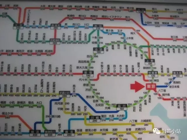 ①确认票价:每个车站都会有线路图(在自动售票机的上方),确认自己想要去的地方,车站名字的上面会有数字,这个数字则为票价。