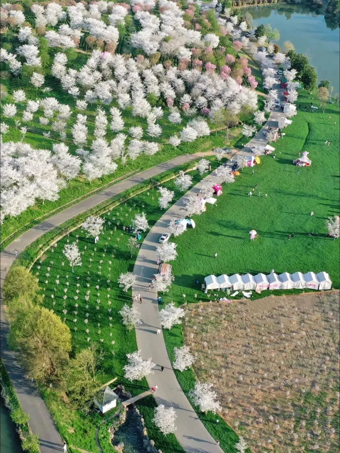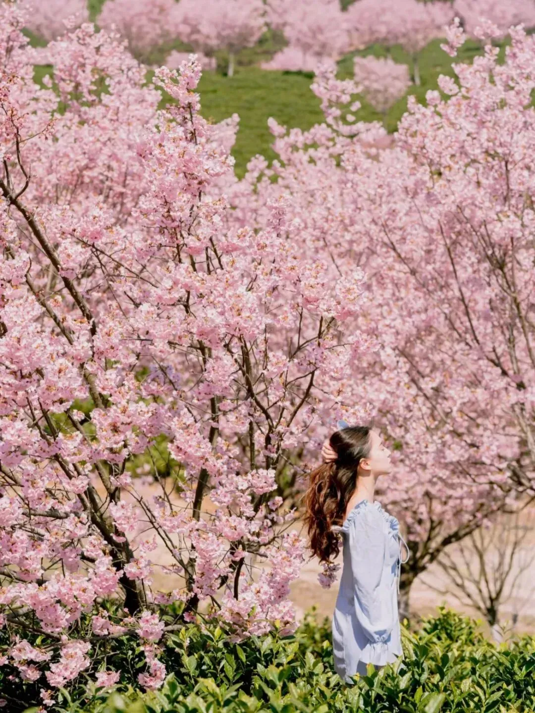 3到4月还有开得正盛的樱花,数千株樱花沿山势层叠绽放,形成烂漫花海,坐在樱花树下野餐,真是太惬意了。