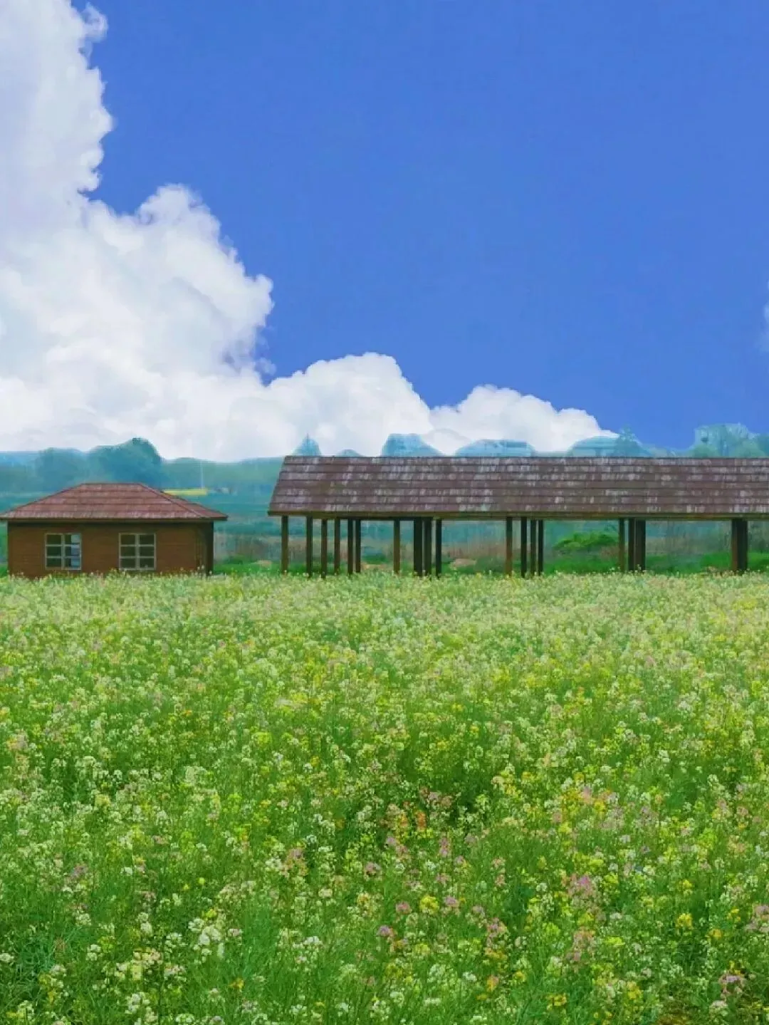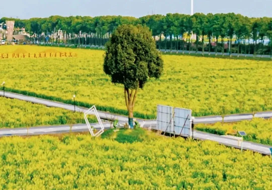 这里还有万亩的彩色油菜花田,4月初就到盛放期了,层叠金色如波浪般翻涌,浪漫的田园气息扑面而来。