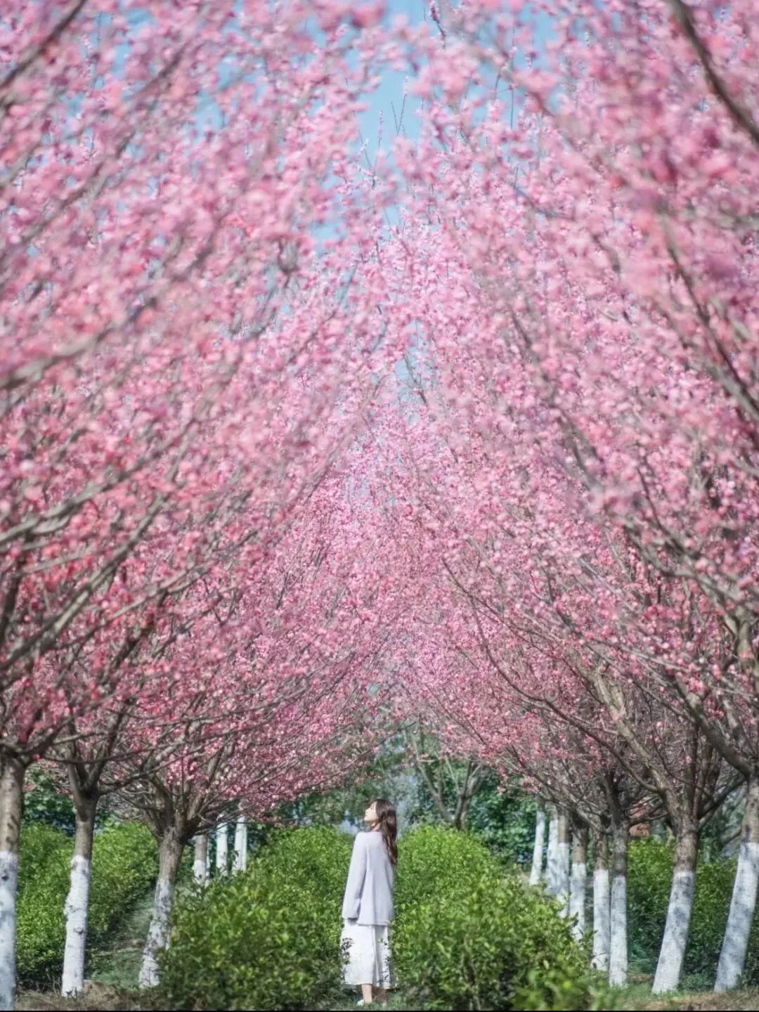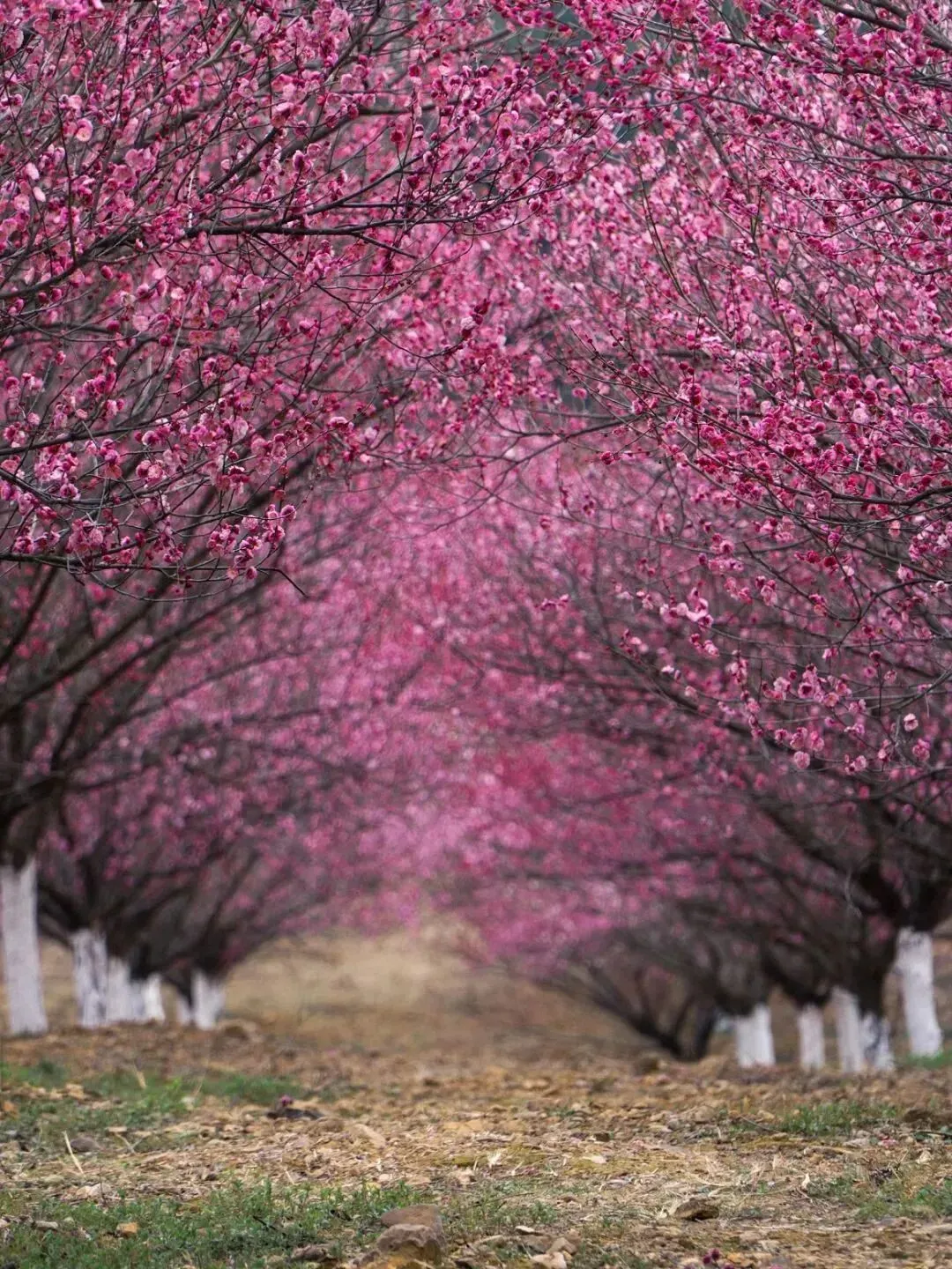 从2月开始,这里就有大片的梅花了,白梅似雪、红梅如霞,粉白渐变的云霄铺满山峦,空气中也漂浮着清甜的梅香。