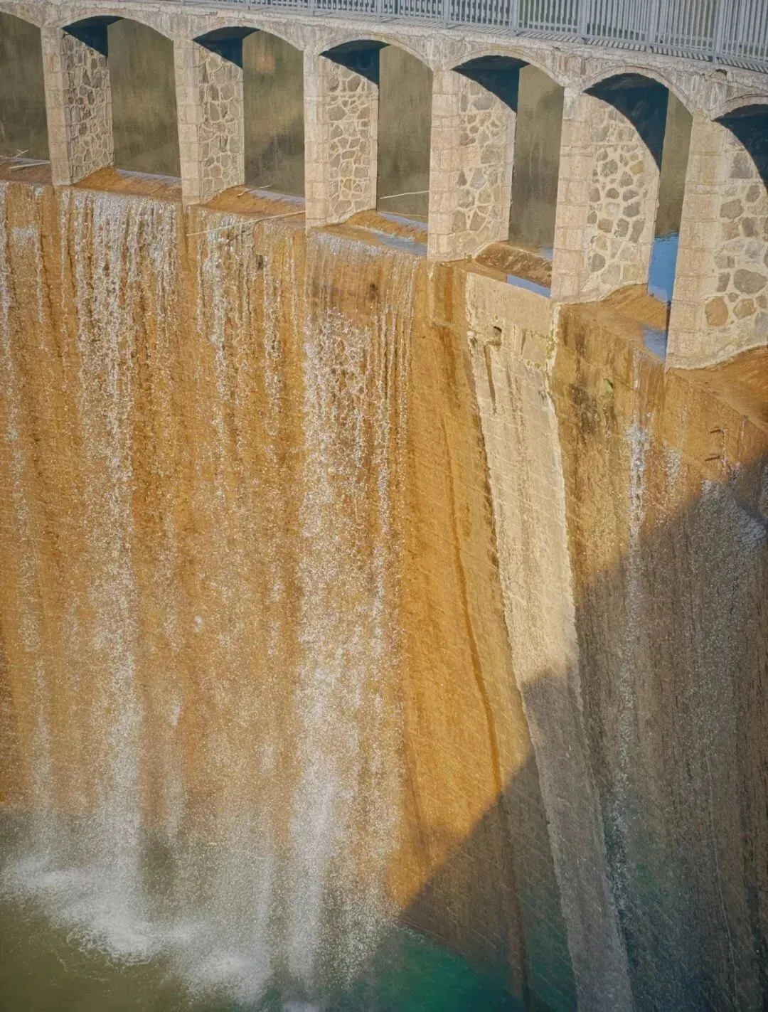 山与水的较量在此凝固成一道弧线,翻坝而过的洪水化作百丈白绸,轰鸣声震得崖壁都在颤动。