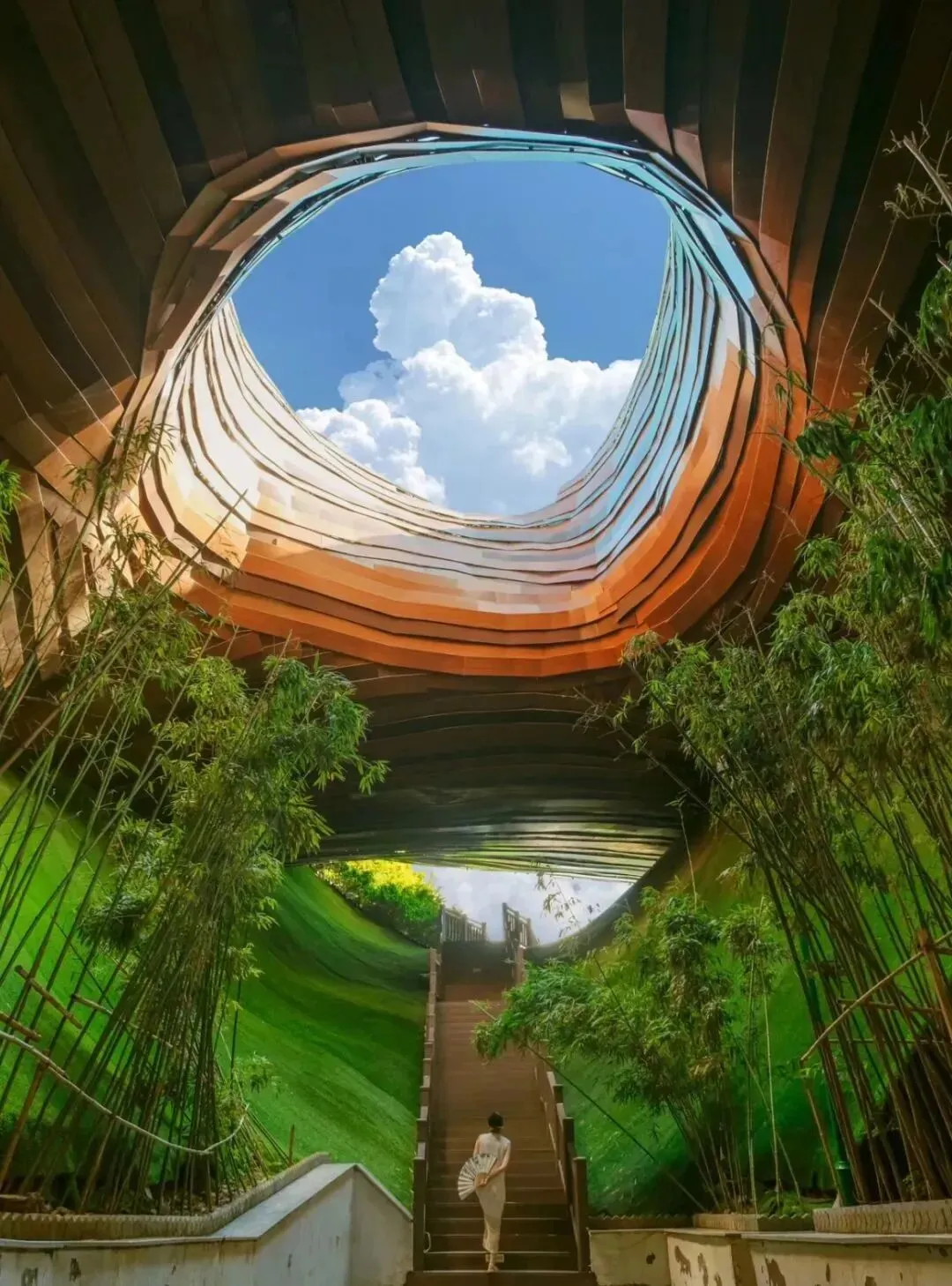 但因为有外面长长的阶梯,配上蓝天,漫画感突然拉满了。
