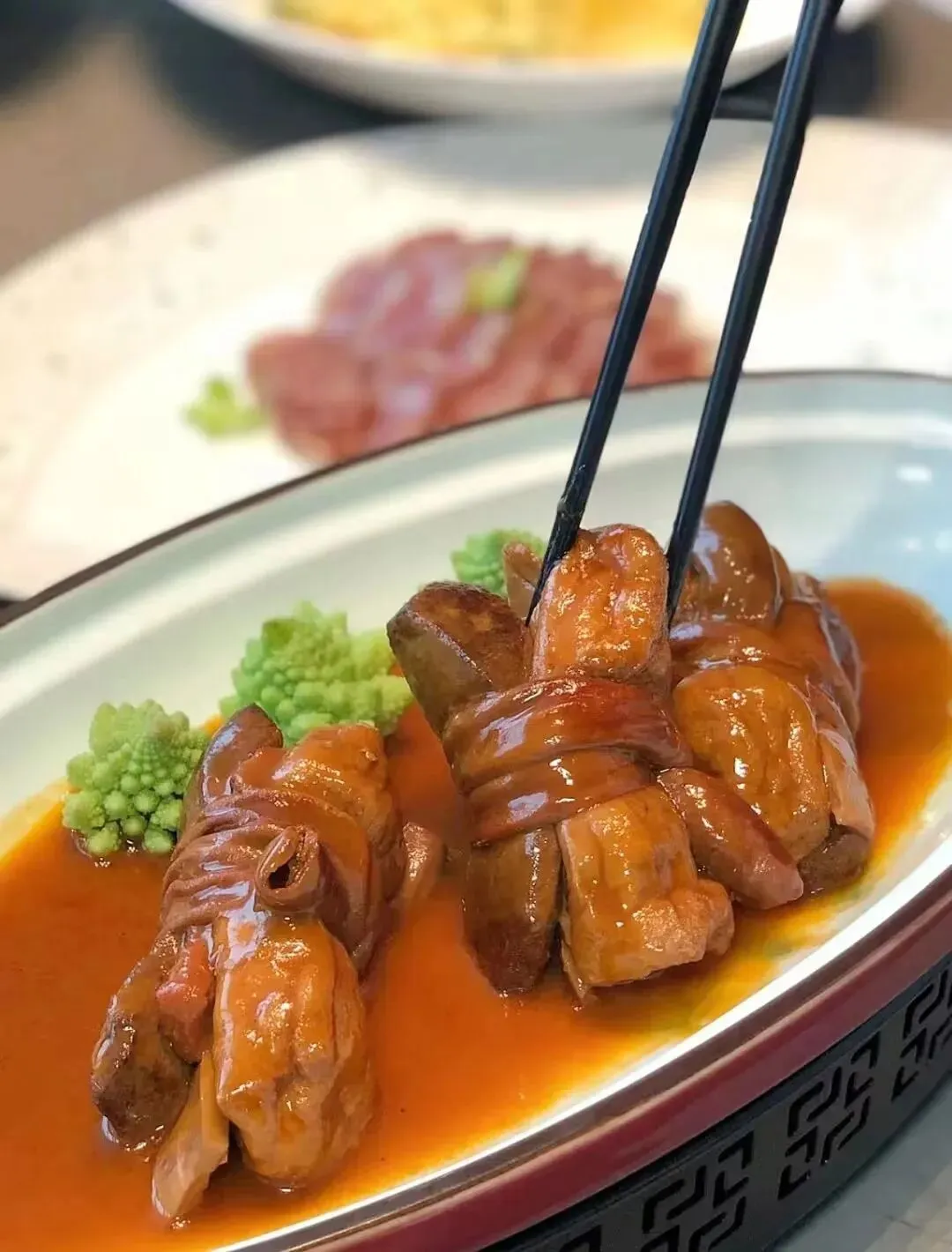 扎肝是只有在溧阳才能吃到传统美食,尤其是在过年期间,家家户户的饭桌上都有它的身影,扎肝需要成双,寓意好事成双。