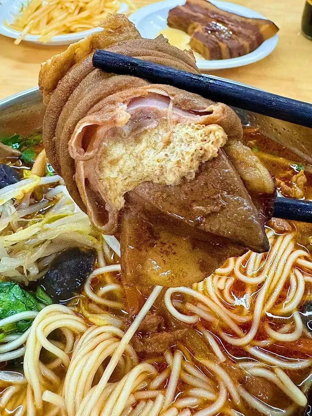 喜欢吃碳水的,还可以到本地的面馆点一碗扎肝拌面,猪肝和五花肉炖的软烂,油滋滋的,搭配面条特别香。