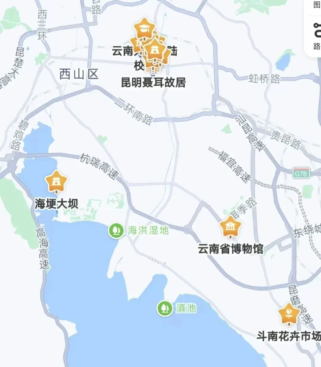 如果有一整天(尤其11月-次年3月): 除了市区景点,还可前往海埂大坝观赏红嘴鸥(仅冬季推荐),或游览斗南花卉市场、云南省博物馆等远郊景点。