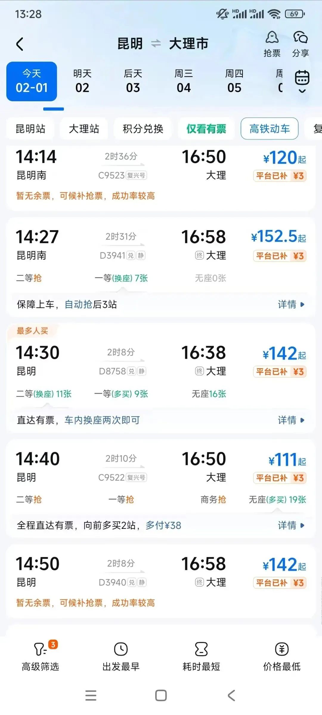 交通 :昆明作为枢纽,机票便宜;大理-丽江间高铁便捷。
