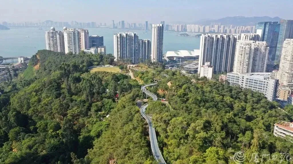将厦门“八山三水”串联其中的空中步道,宛若盘旋穿梭于城市楼宇之间的游龙,迅速成为厦门新晋网红打卡地。