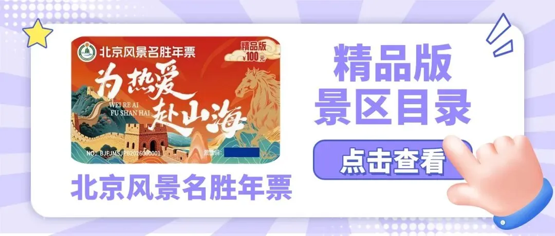 仅以上推荐的五处景区,已经值回票价。而北京风景名胜年票精品版仅95元,不仅能解锁这些景区的优惠,还覆盖京城众多名胜,一次打卡就值回票价!