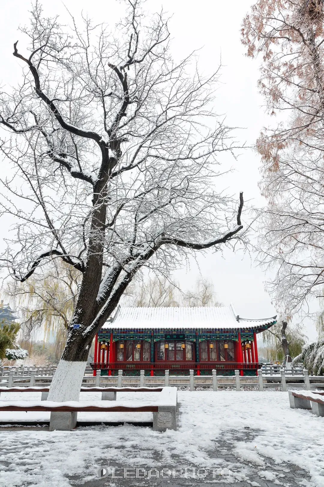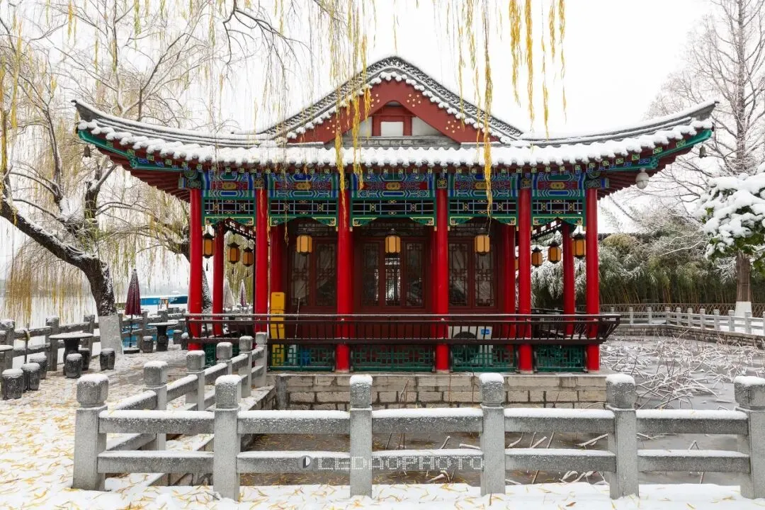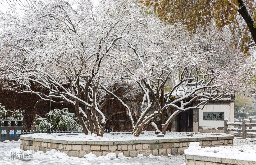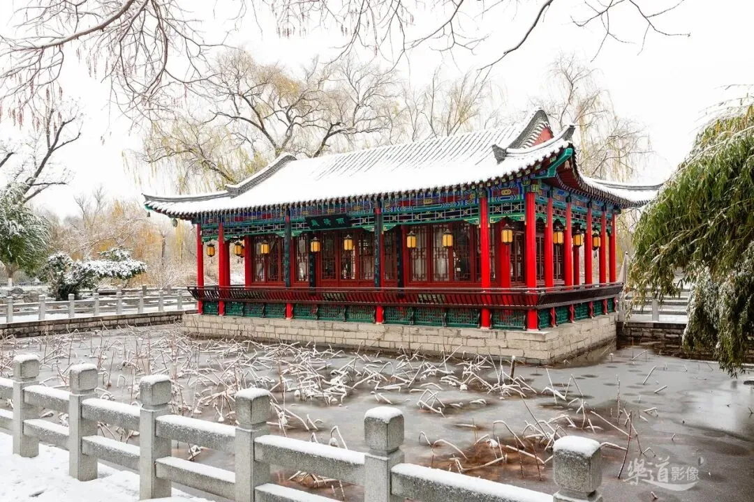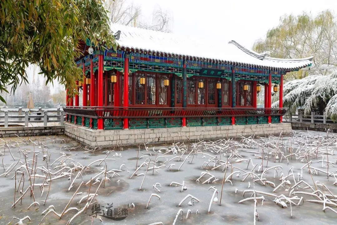 ↑ 冬日雨荷厅,白雪皑皑