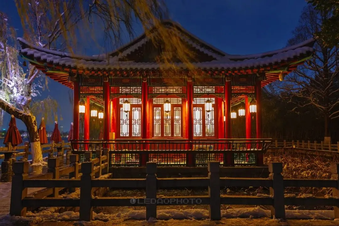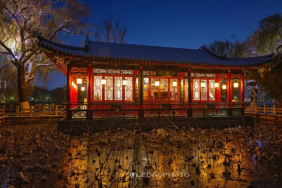 ↑ 看罢白天的雨荷厅及周边美景,再来领略雨荷厅晚上的景色,2025.12