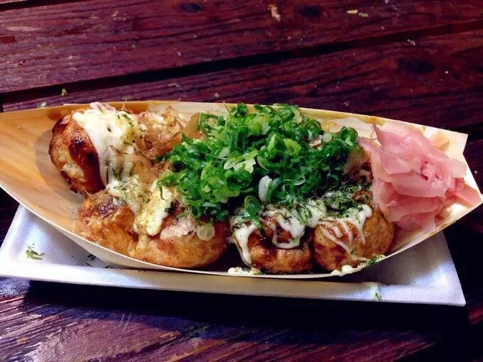 被称之为日本的国粹小吃,它的起源地正是大阪。在和好的面粉和水中加进几块煮熟的章鱼、葱丝及其他材料后,逐一放在圆形小模具里一起烧烤,再浇上特制酱汁,柴鱼片等趁热吃,味美价廉,在大阪各处都能吃到。