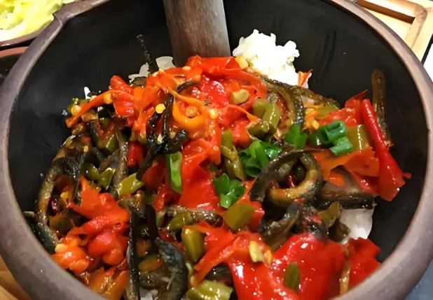 这道菜是湘菜界的“扫地僧”。柴火现烤的辣椒舂碎,加皮蛋、茄子一拌,看着粗犷,吃着却层次丰富,辣得直冒汗还停不下来。湖南卫视都专门拍过,一定要试!
