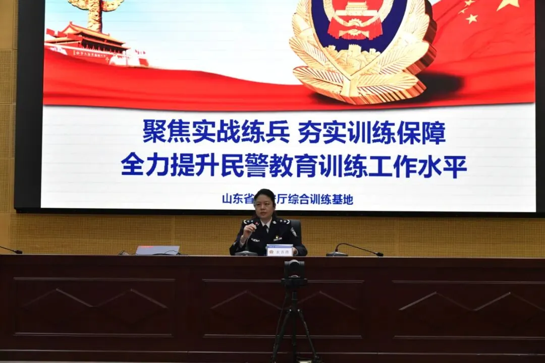 ▲山东省公安厅综合训练基地主任、厅直属公安局局长、二级警务专员张青青作研讨交流发言