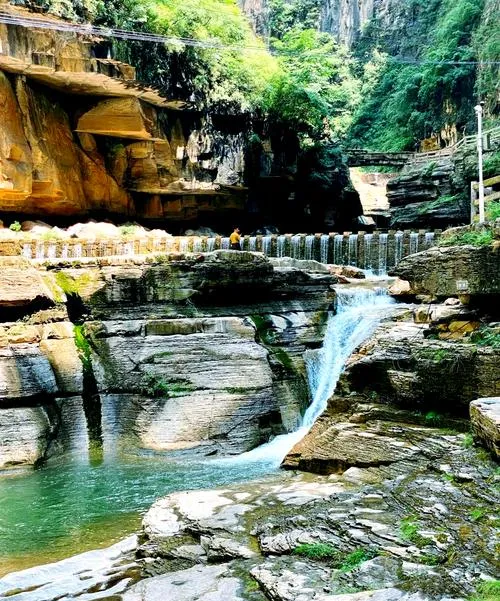 峡谷里有栈道,贴着崖壁修的,走在上面能听见下面溪水的声音,水流不大,但常年不断,这水把石头冲刷得很光滑,有些地方能看到壶穴,就是水流带着石子在岩石上旋转磨出来的圆坑,有的坑直径能有一米多,深度也有半米,你看着这些坑,就知道这水流在这磨了多少年。