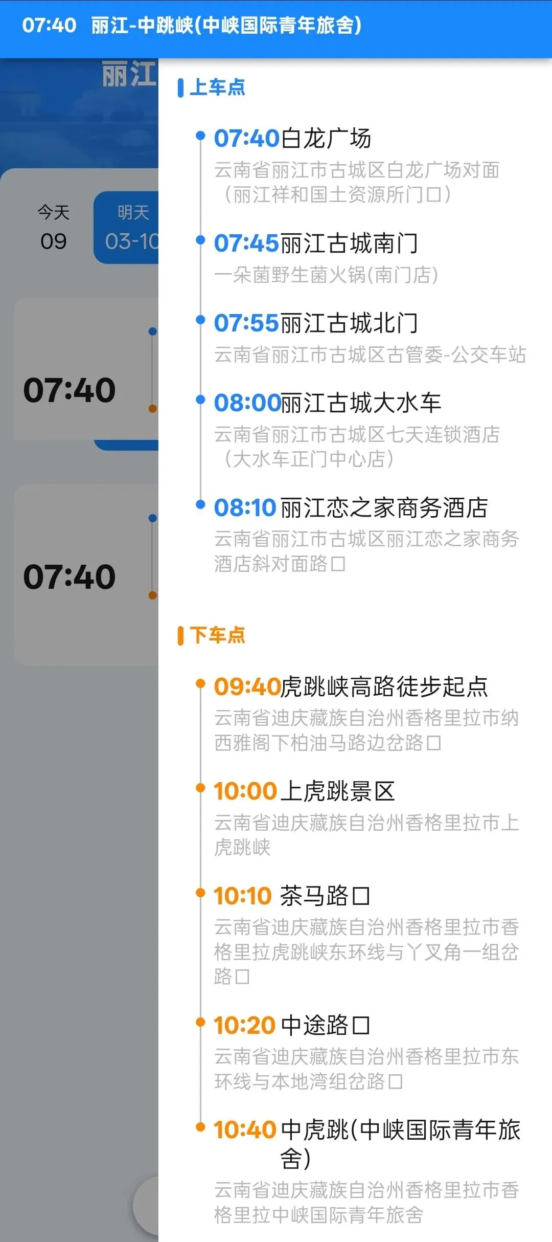 在公众号“中峡景区直通车”上买好丽江古城-中跳峡(中峡国际青年旅社)的车票。