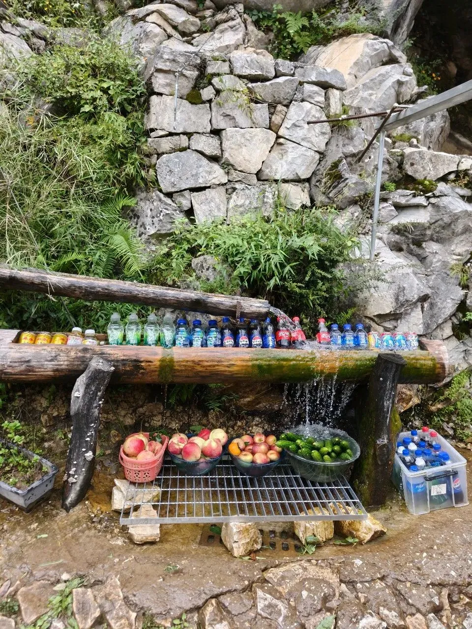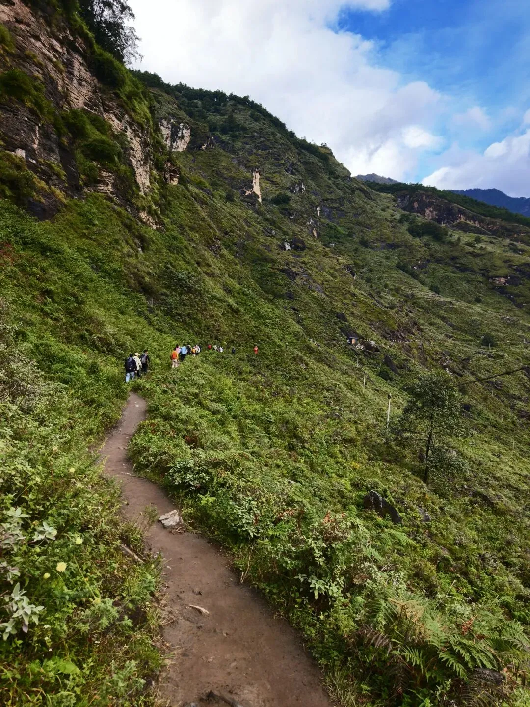 上山的路相对平缓一些,难的是下山。已经徒步了好几个小时了,腿开始有些不听使唤了,下山的路也要陡一些,好几次险些摔倒,主要是腿没劲了,下山时打哆嗦很容易摔倒。