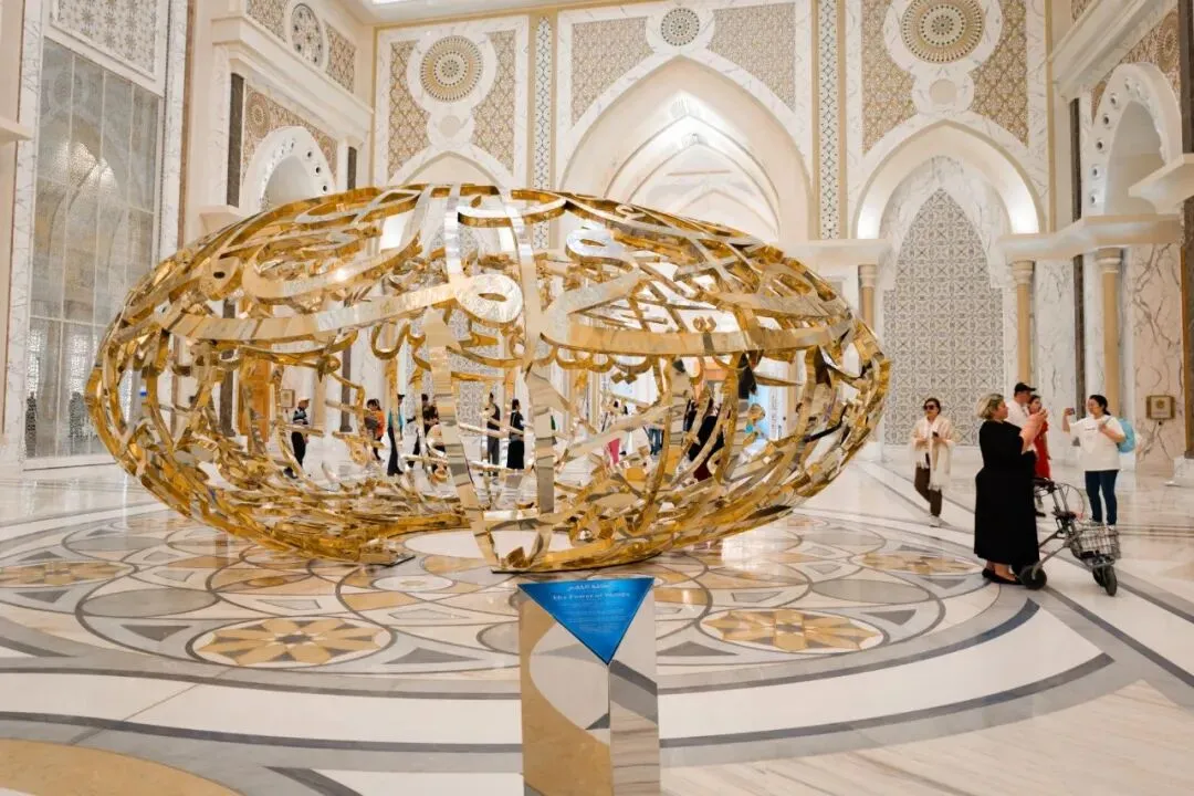 整体的设计灵感来源于传统阿拉伯建筑中常见的穹顶结构,极具标识性的银色屋顶由8层几何图案编织而成,高达180米,构成了由 7850 颗“星星”,在不同光线不同角度下闪闪而动,当阳光透过缝隙洒下,“星星”碎了满地,像是“光之雨”般,如梦似幻。