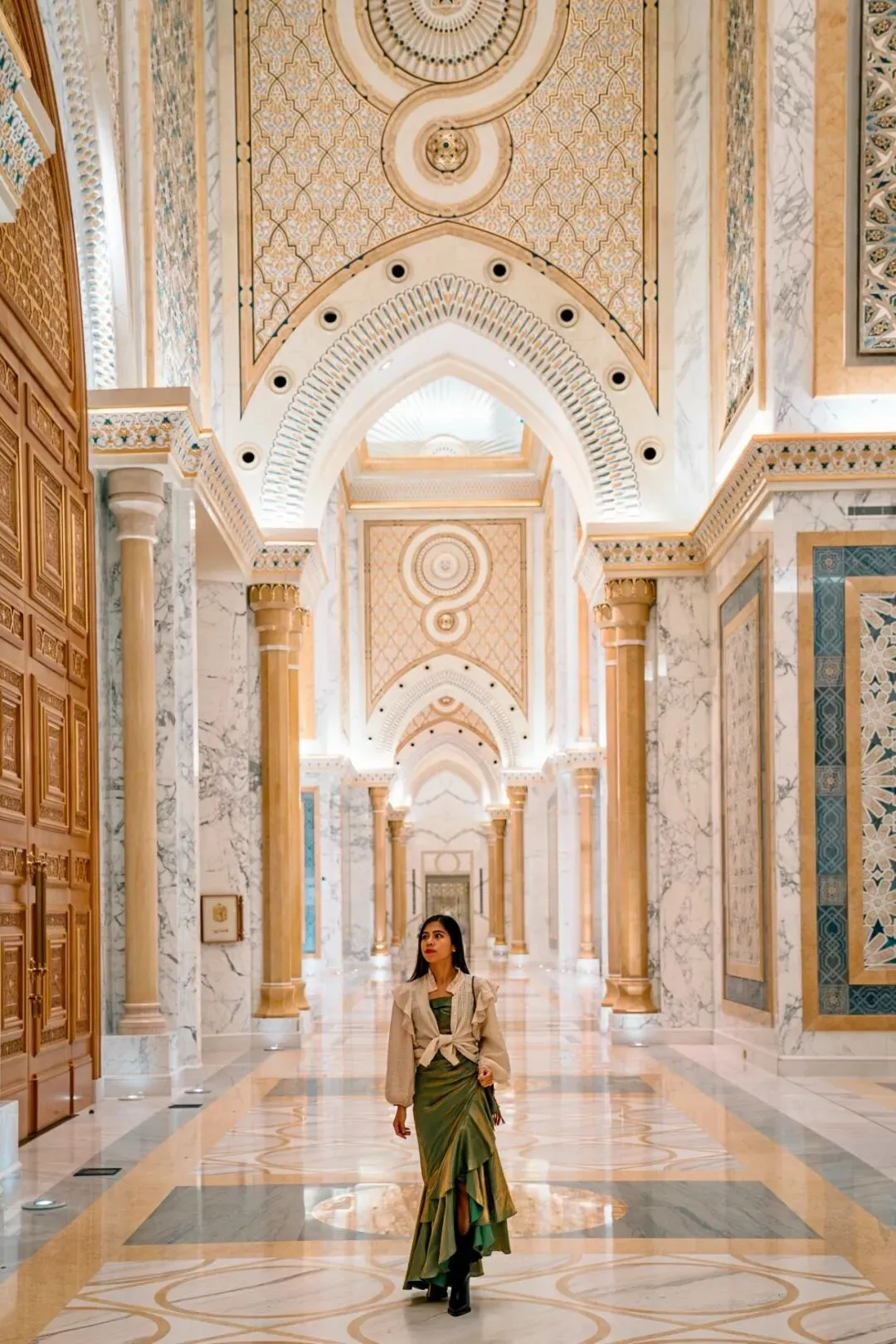 阿布扎比总统府(Qasr Al Watan)是为数不多的可以参观的总统府,它是当今阿联酋内阁和阿联酋高权力机构联邦高委员会的官方会议场所,也是正式国事访问和各国首脑活动的举办地。它不仅仅是一座传统的宫殿,还体现了独具匠心的阿拉伯传统艺术:整个宫殿以白色、黄色和蓝色为主色调,白色代表天空,黄色代表沙漠,蓝色代表波斯湾,象征着阿布扎比的富裕和繁荣。