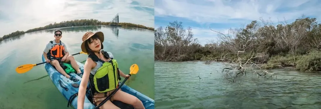 红树林指生长在热带、亚热带低能海岸潮间带上部,以红树植物为主体的常绿灌木或乔木组成的潮滩湿地木本生物群落,生长在阿布扎比陆地与海洋交界带的滩涂浅滩。隔绝了城市的车水马龙,我们可以划着皮划艇,穿梭于红树林的迷宫之中,去沼泽地探险,寻找火烈鸟岛,感受大自然的原始与神秘。