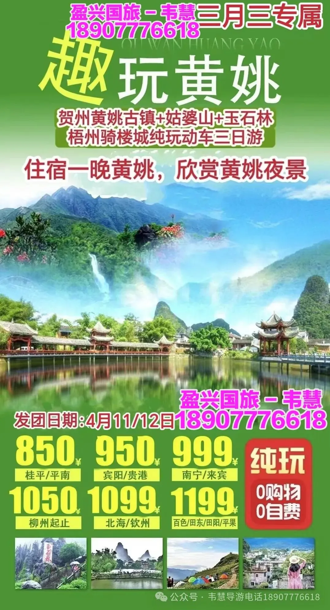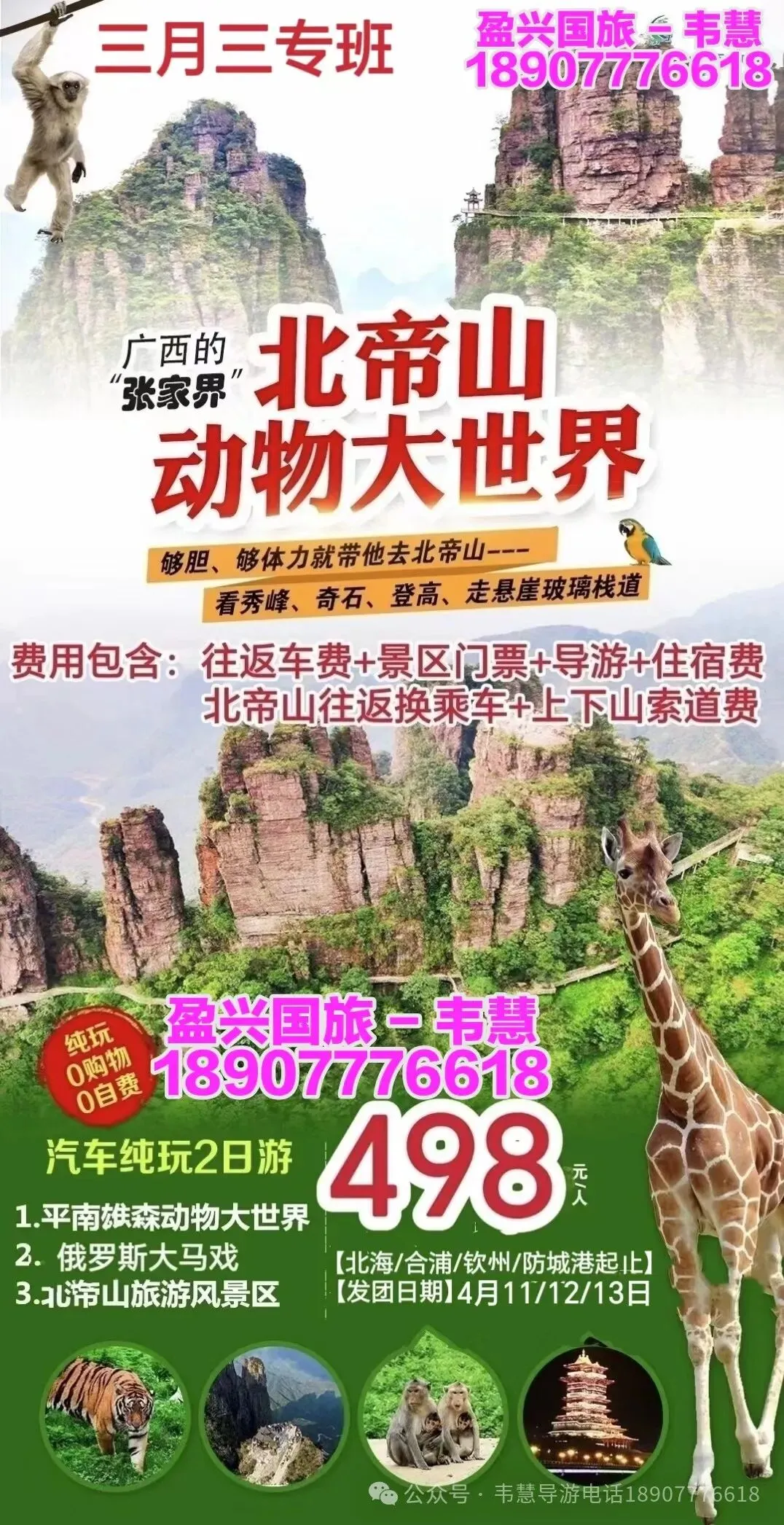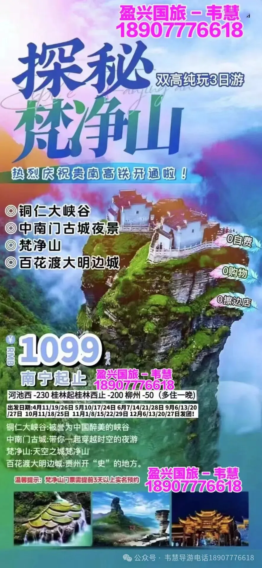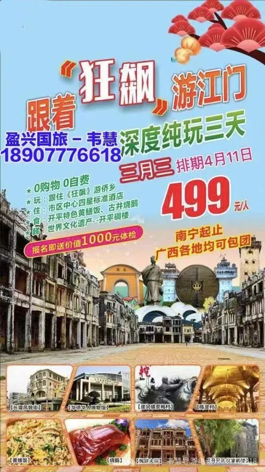 参团报名请给名单(姓名+身份证号码 +手机号码)并转款,以收款留位置,座位以收款前后顺序安排!孩童婴儿都要占座留位都需付费!