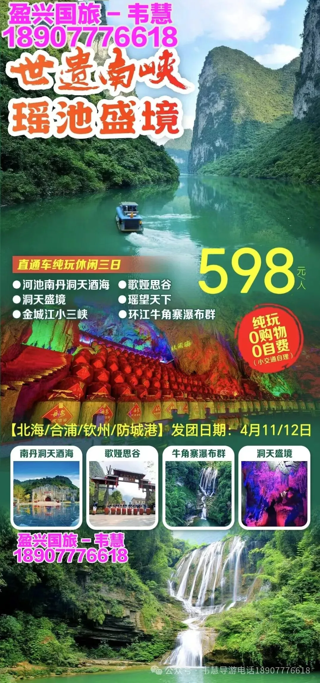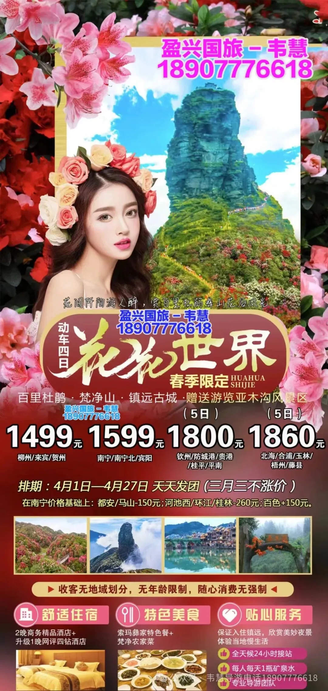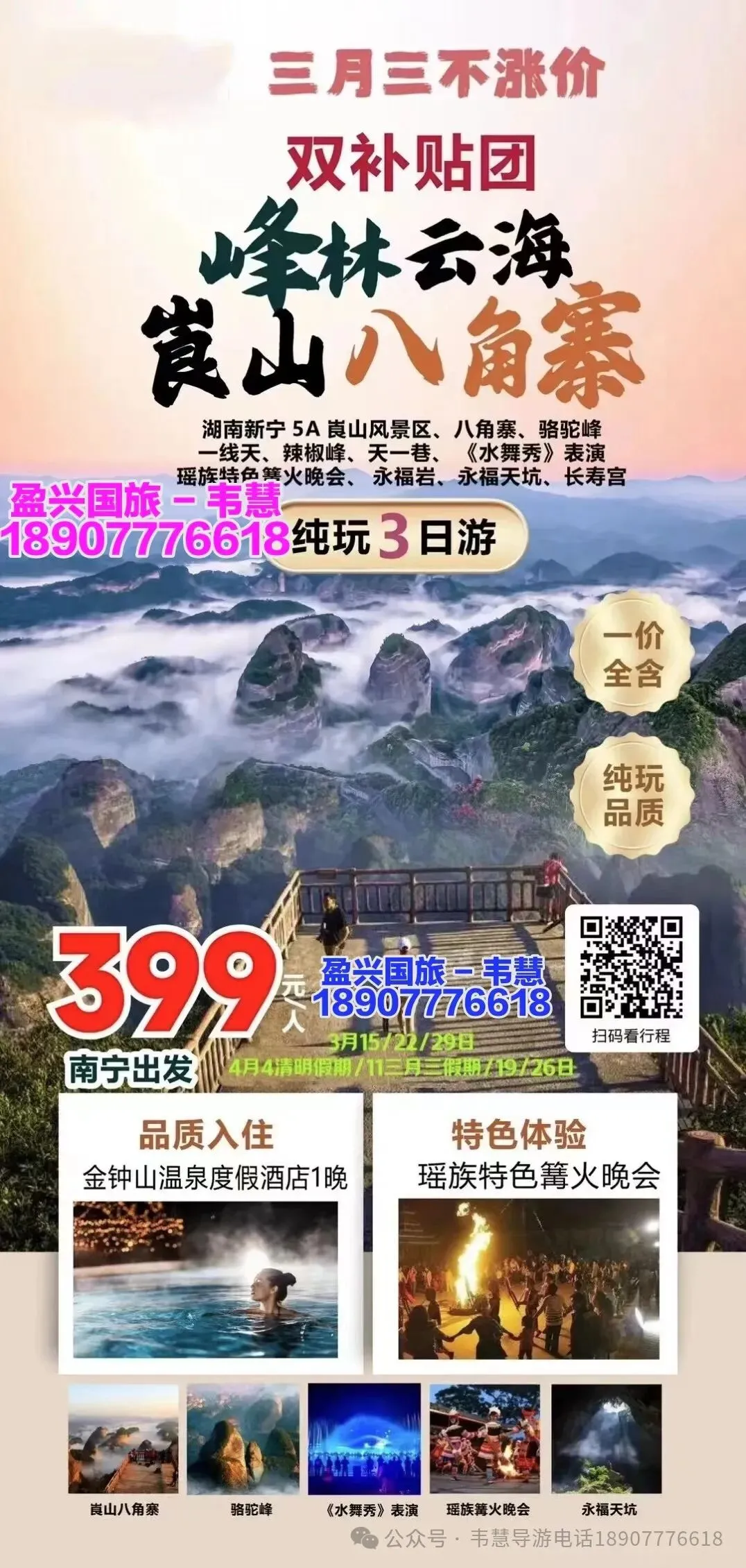参团报名请给名单(姓名+身份证号码 +手机号码)并转款,以收款留位置,座位以收款前后顺序安排!孩童婴儿都要占座留位都需付费!