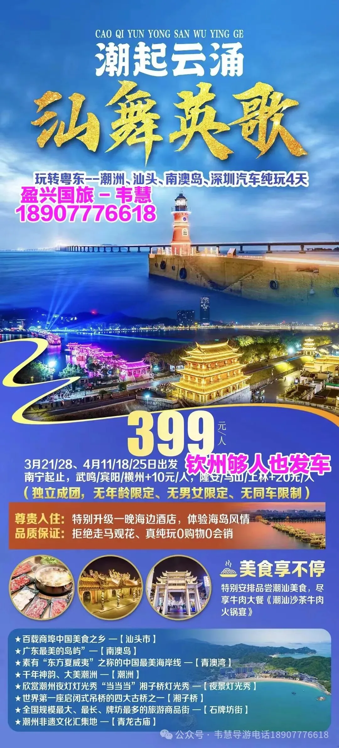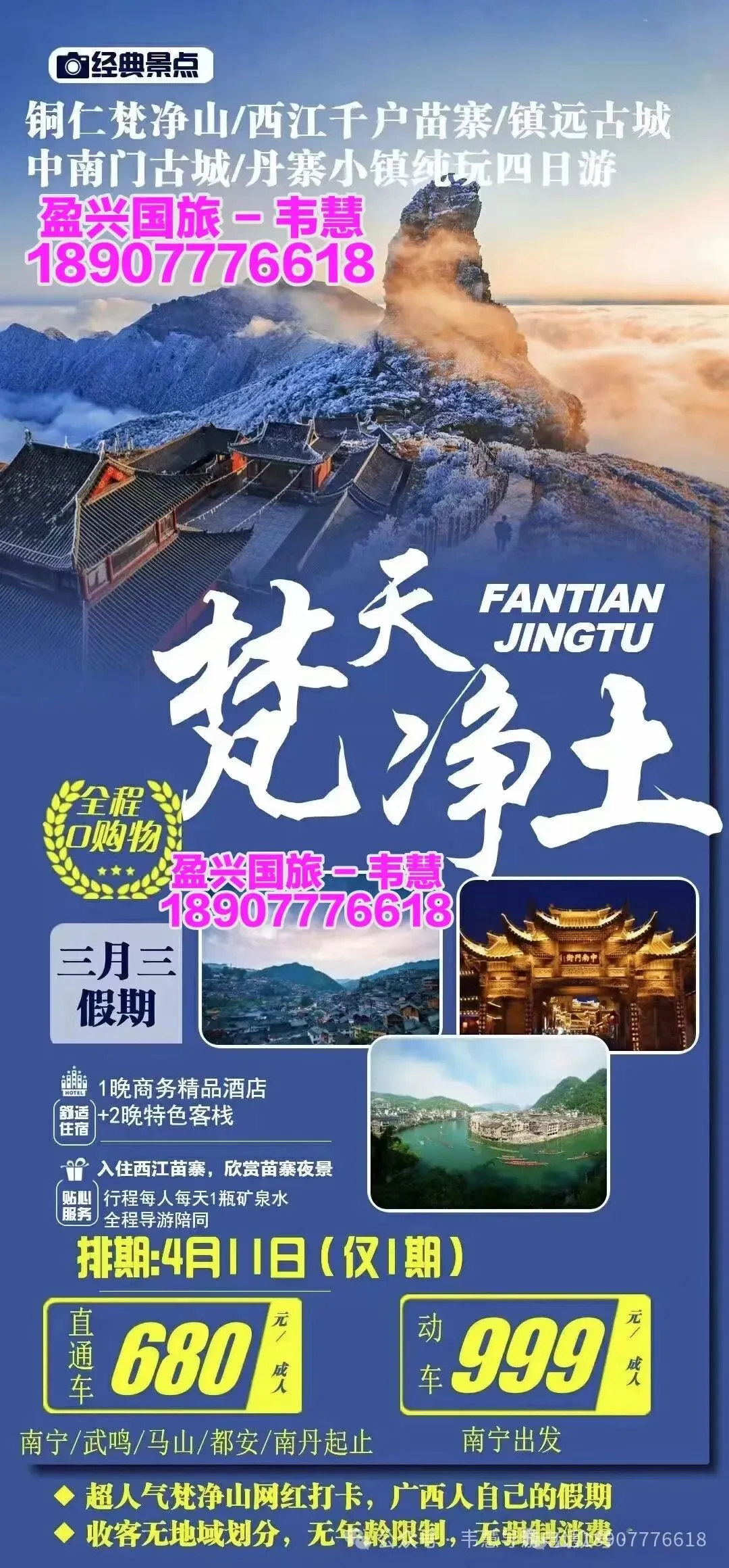 参团报名请给名单(姓名+身份证号码 +手机号码)并转款,以收款留位置,座位以收款前后顺序安排!孩童婴儿都要占座留位都需付费!
